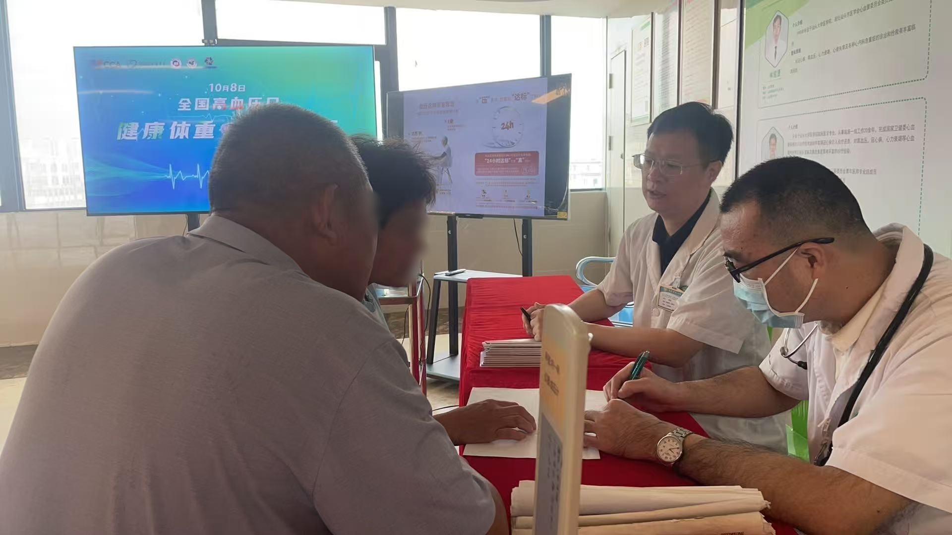 现场通过视频科普活动,向公众生动讲解高血压的成因、危害及日常管理要点,结合真实病例揭示血压控制不佳可能引发的心脑血管并发症。医护人员还为到场群众提供免费血压测量、健康咨询与风险评估服务,发放健康指导手册,倡导减盐减油、合理膳食、适量运动的生活方式,并指导居民如何通过自我管理实现血压达标。针对超重与肥胖人群,特别强调控制体重对血压管理的关键作用,建议每周至少进行150分钟中等强度有氧运动,结合膳食调整,逐步实现健康体重目标。活动现场气氛热烈,群众积极参与互动咨询,体现了居民对高血压防治知识的迫切需求与高度关注。