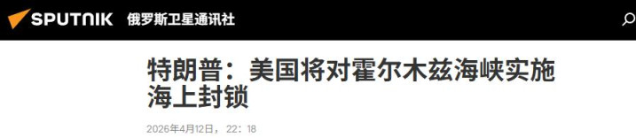 俄罗斯卫星通讯社2026年4月12日特朗普:美国将对霍尔木兹海峡实施海上封锁