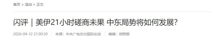 中央广电总台国际在线2026-04-12闪评|美伊21小时磋商未果 中东局势将如何发展?