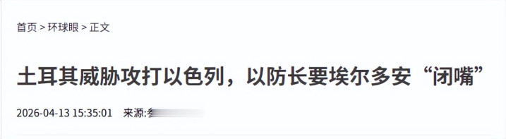 参考消息网2026-04-13土耳其威胁攻打以色列,以防长要埃尔多安“闭嘴”