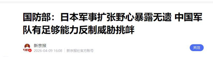 中国国防部4月9日明确表态,日本“再军事化”狂飙突进,严重违背国际公约与和平宪法,中国军队有足够能力反制一切威胁挑衅,若日本胆敢使用部署的导弹攻击中方目标,所有相关军事设施都将成为中方合法打击目标。